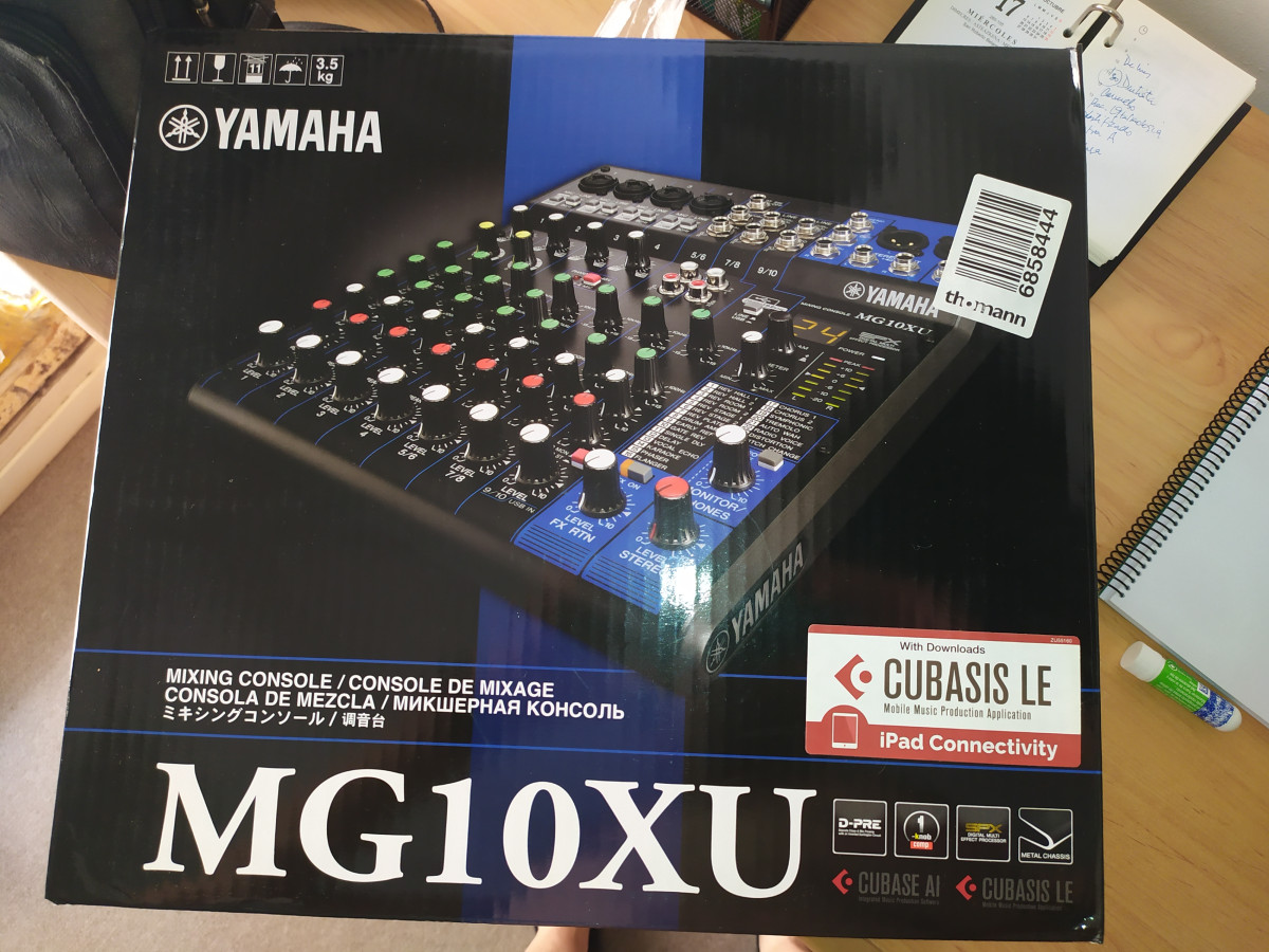 Yamaha MG10XU mezclador. Preamplificador de micro D-Pre con circuito Darlington invertido. Interfaz de audio USB con 2 entradas y 2 salidas a 24 bits y 192 Khz. Compatible con iPad mediante el kit de conexión Camera Connection de Apple para iPad. Versión de descarga del software DAW Cubase AI. Interruptor de atenuación (pad) en las entradas mono. Salidas balanceadas XLR. Alimentación phantom +48 V. Fuente de alimentación universal válida para todos los paises del mundo. Chasis metálico. Manual de instrucciónes. Como nueva, sin manchas, arañazos ni signos de uso, siempre protegida con funda anti polvo.