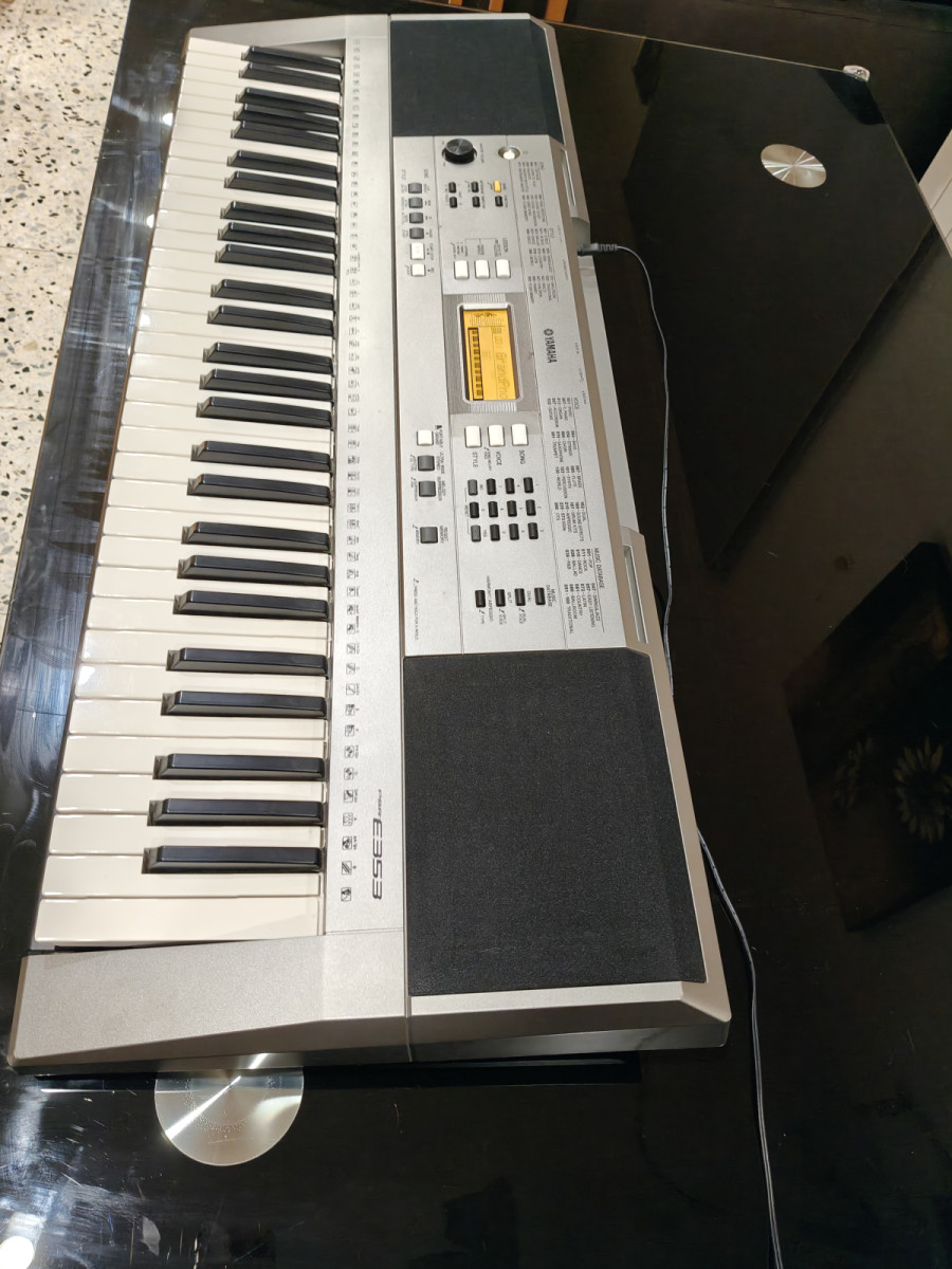 Teclado electrónico Yamaha PSR E353 en buen estado. Incluye cargador original. Solo tiene unas pequeñas marcas de uso en los laterales como se puede apreciar en las fotos. Por lo demás está en perfecto estado. No incluye soporte partituras.