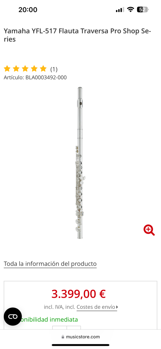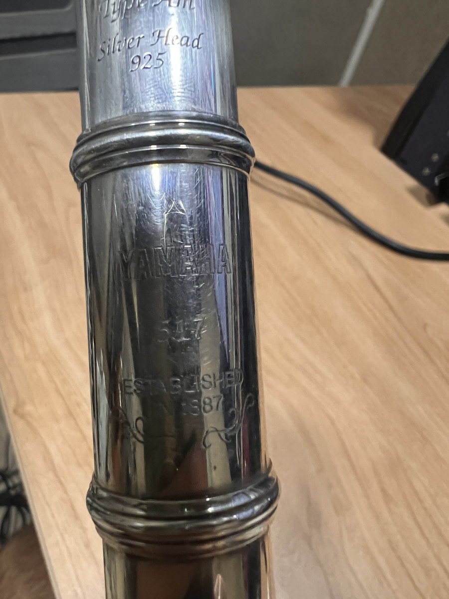 es una flauta profesional de la gama alta de yamaha con cabeza de plata