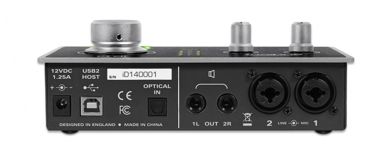 El iD14 cumple los mismos elevados niveles de calidad que el iD22, también se presenta en una sólida caja metálica, pero es de dimensiones más reducidas y dispone de menos entradas y salidas físicas. Se mantienen las dos entradas micro/línea a través de conectores combo XLR/jack, y dispone de una entrada para instrumento en el panel frontal.
