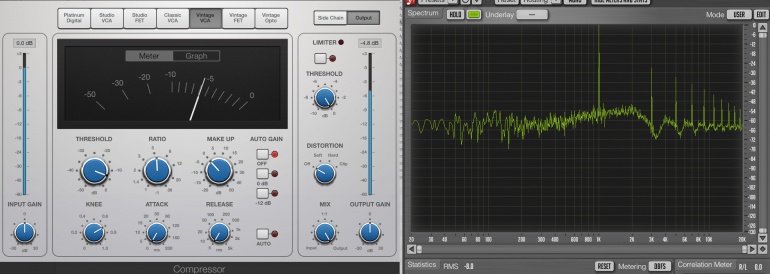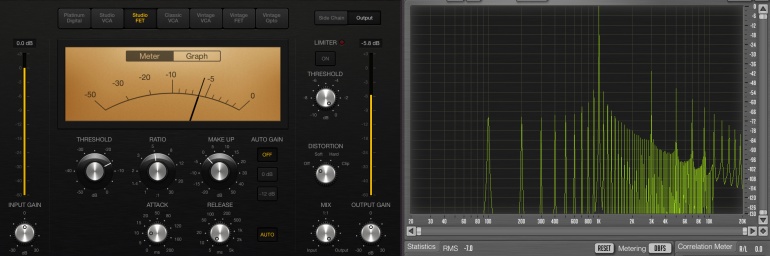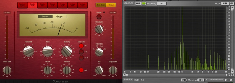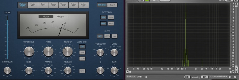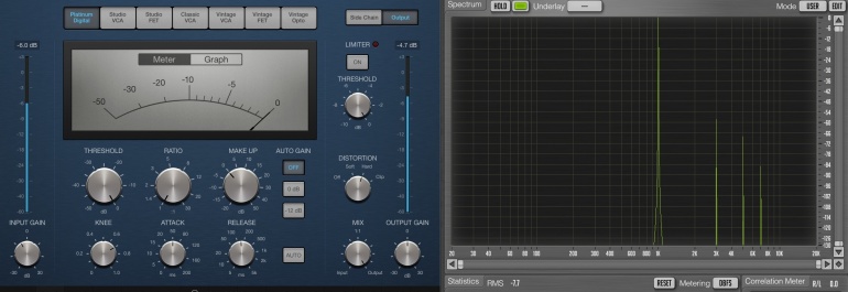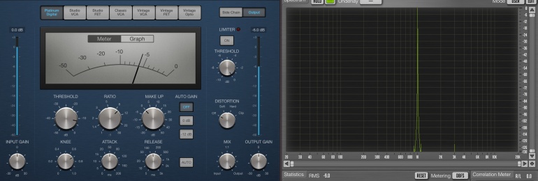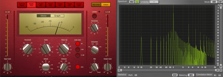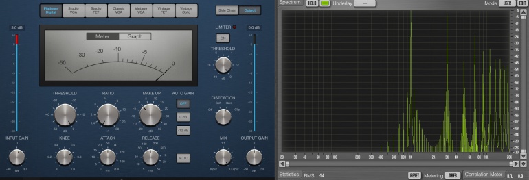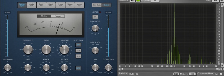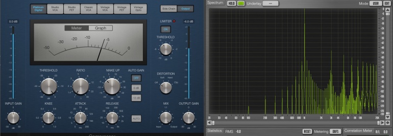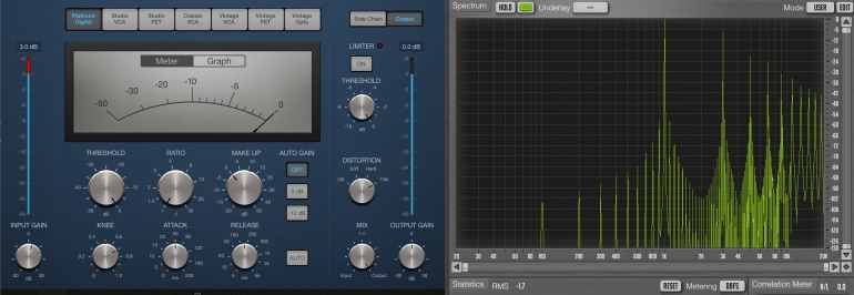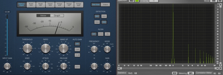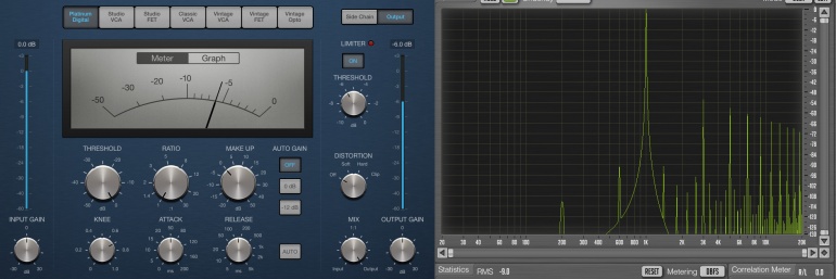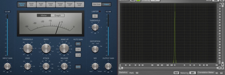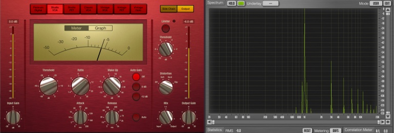 Al copiar la instancia de un canal en otro, a veces el nuevo módulo copiado no importa correctamente los ajustes del anterior. Durante las pruebas tímbricas, utilizando pues una señal constante, nos hemos percatado de que la cantidad de reducción de ganancia aplicada varía en función de los tiempos de ataque y relajación seleccionados en todas las emulaciones, cuando esto no debería ser así, y como consecuencia, obliga a reajustar el umbral. Los únicos circuitos en los que no sucede esto es en el Platinium y en el Classic VCA, dado que no hay ajustes posibles de tiempos.