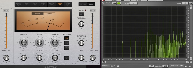 La unidad original —el SSL X Logic G series compressor—, bajo esos ajustes, arroja los siguientes resultados: