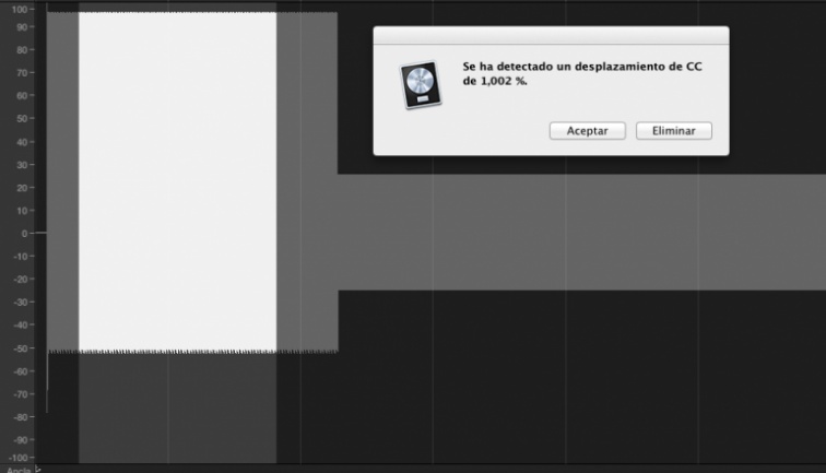 [Índice]Recordemos que Logic Audio y sus plugins trabajan a 32 bits en coma flotante, por lo que mientras nos mantengamos en ese entorno, el sistema es capaz de trabajar a niveles mayores de 0dBFs sin distorsionar, aunque suene raro. Al trabajar a estos niveles es importante recordar dos cosas: que hay plugins que, simulando los equipos analógicos, sí que producen distorsión, y que al final de la cadena, si exportamos el audio en coma fija —lo normal— deberemos reducir el nivel para no recortar la señal.