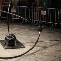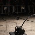[Índice]Sónar+D introdujo dos instalaciones muy llamativas que merecía la pena ver. Una de ellas era Nyloïd, una especie de ser mecánico accionado por tres enormes tentáculos que emitía intrigantes e intimidantes sonidos. El “ser” se ponía en marcha en varias ocasiones a lo largo de cada día –había unos horarios pero no es que se cumplieran–, rodeado de unas vallas para que la gente no tocara los elementos de la instalación y con sus movimientos espasmódicos y sus sonidos de otro mundo parecía un enorme alienígena neurótico siendo observado por humanos. Muy impactante y original.