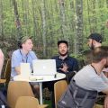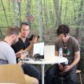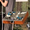 Moldover básicamente explicó a lo largo de su charla –que intercalaba con breves demostraciones musicales– la que ha sido su trayectoria profesional, en la que ha combinado el trabajo de diseño de dispositivos de control totalmente originales, con la composición músical y las actuaciones en directo. Curiosamente se detuvo bastante a hablar sobre el proyecto de dispositivos de música colaborativa que ha desarrollado y en el que DJTechtools también ha participado, los “Jamboxes”, que son algo que podríamos definir como “pequeños centros de recreo musical colaborativo”, unos pensados para gente con educación musical como el Syncomasher y otros para gente sin conocimientos musicales pero con ganas de pasarlo bien como el Octamasher, que permite que la gente se ponga a disparar loops y muestras de canciones conocidas y crear entre varias personas mashups en el momento. Más recientemente ha estado trabajando en el ConnecTable, una jambox open-source modular y estandarizada diseñada para que cualquiera monte dispositivos de música colaborativa por su cuenta. Le pregunté al final de la charla el software que utiliza con las diferentes jamboxes que ha diseñado, y explicó que siempre trabaja con Live.