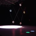 La otra instalación era la de Sónar Planta. Cinco discos de metal en movimiento suspendidos en el aire, danzaban reflejando la luz de los colores primarios por un lado y los aditivos por el otro al son de relajantes composiciones musicales. La instalación se podía observar en una gran sala en penumbra con cómodas gradas y fresco ambiente –muy de agradecer–, y además de ser muy bonita de ver producía un fantástico efecto de relax quedarte un buen rato observando el conjunto. En mi opinión, ha sido mucho más interesante que la instalación de Sónar Planta del año pasado.