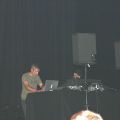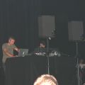 Autechre hicieron una de divos. Vale que no te gusten las actuaciones en directo y que te dejen imponer las condiciones que te roten “ya que lo haces”, pero lo de actuar totalmente a oscuras lo considero un capricho fuera de lugar en un festival. La luz se mantuvo unos segundos al inicio de su actuación, para luego fundir a negro. ¿El objetivo era darle más importancia a la música como protesta a los actuales shows cargados de material visual? Bien, aceptaremos barco como animal acuático, pero yo para eso –y otra mucha gente– ya me compro discos y me los escucho a oscuras si me apetece. Su directo fue probablemente lo más abstracto y experimental que les pudo pedir el cuerpo, dentro de lo ya altamente críptico que suele ser su IDM. Su sonido a la larga terminaba produciendo cierta fatiga mental. Y sí, los que seguían en el escenario tras los segundos de luz fueron ellos –no un camarero poniendo un CD– como atestiguan las fotos que tuve que hacer a base de mucho flash y enfoque manual aleatorio. Esto es lo mejor que conseguí: