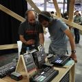 [Índice]La gente de Elektron está en plena fase de beta pública de su Overbridge –que parecía que no llegaba nunca–, que permite controlar desde tu DAW los aparatos de Elektron como si fueran plugins. Y por ello montaron un stand donde se podía probar in situ un Analog Four y un Analog Keys con el Overbridge en un Mac. Se esperaba que en el Sónar tuvieran lista una versión final de Overbridge –que habría incluido la máquina Analog Rytm– pero no estaba presente. No obstante lo que se podía ver y probar de Overbridge era bastante prometedor y parecía funcionar muy bien, la integración entre las máquinas y los plugins Overbridge parecía muy fluida. También había máquinas de Elektron con auriculares para que la gente pudiera pasar el rato –largos ratos puedes pasar con esas máquinas– y para los que quizá se quedaron con ganas de ver el Analog Rytm conectado a un ordenador con Overbridge, emplearon el Analog Rytm y un ordenador para ofrecer un sencillo videojuego en el que pulsando los pads del aparato debías cazar topos que aparecían en una rejilla: las mejores puntuaciones se llevaban camisetas y cables. En fin, para pasarte un par de horas cacharreando con los aparatos de Elektron, y de paso igual te encontrabas por allí con Richie Hawtin.