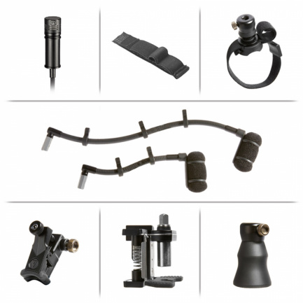 Este es el tipo de retos que ha afrontado Audio-Technica con su nuevo sistema de microfonía para instrumentos ATM350a. Se trata de un sistema que está disponible en seis diferentes formatos, cada uno de ellos pensado para un tipo específico de instrumento o aplicación. Todos ellos incluyen el mismo elemento microfónico, pero cada uno cuenta con un hardware de montaje diferente para adaptarse a un tipo específico de instrumento. Cada uno de estos paquetes se suministra con un estuche forrado de espuma, que incluye una bolsa de rejilla donde almacenar los diferentes componentes de forma ordenada y segura.
