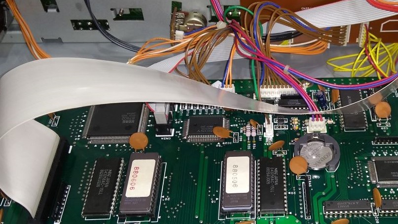 - Vemos también los 8 ICs (Nec) que constituyen la PCM ROM con los conectores en los extremos que entiendo que son para las expansiones.