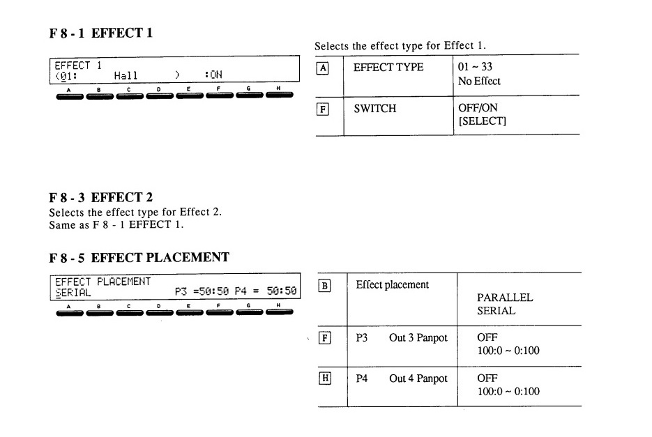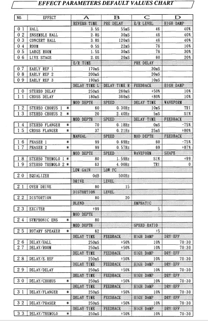 Este tema es uno de los más interesantes teniendo en cuenta que hablamos de hace mas de 35 años, notablemente superior a lo que incluian sus competidores más directos. Además de ser 2 unidades de inserción independientes que pueden ser conectadas en serie o paralelo, también disponen de un completo juego de algoritmos, Reverbs, Delays, Chorus, distorsiones, Phaser etc... nada mal para la época.