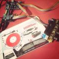 Esta es una curiosa historia sobre productos para DJs cuyo final está todavía por desvelarse. Desde finales de septiembre, y casi coincidiendo con la final del campeonato mundial de DMC –una de las fotos es de un desarrollador sosteniendo un folleto del plato en la final–, comenzaron a aparecer en las redes sociales Facebook, Twitter e Instagram imágenes de un proyecto llamado 7” Portable Scratcher. Se trata de un plato portátil para vinilos de 7” con tracción por correa, selector de velocidades 33/45/78, pitch rotatorio de 10%, alimentación con batería, doble botón start/stop, entrada y salida de línea, y lo mejor: un crossfader mini-Innofader integrado sobre una base basculante.
