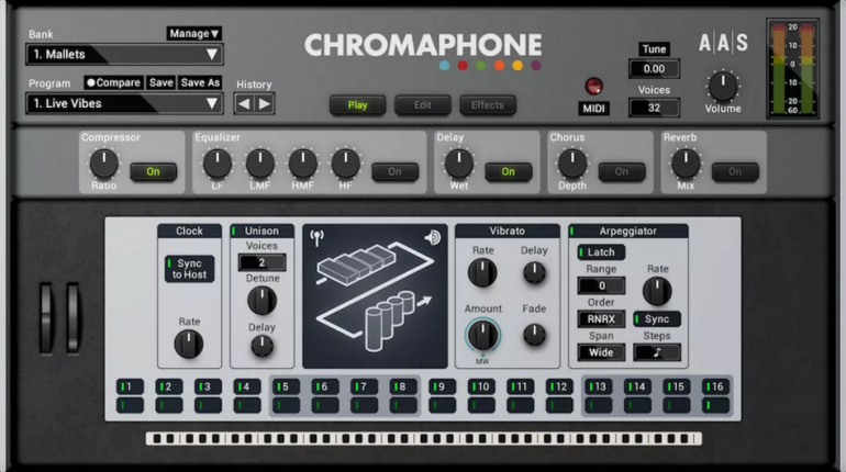 Chromaphone, sin embargo, no es el típico instrumento de modelado que se limita a buscar imitaciones de determinados instrumentos o a tan siquiera acercarse a ciertos timbres. Aunque eso es algo que se logra en este plugin, la amplia cantidad de opciones de modelado sumadas a una serie de procesos comúnmente encontrados en un sintetizador, expanden las posibilidades tímbricas notablemente, logrando una especie de ecosistema orgánico-sintético.