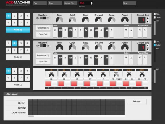 Errozero es una empresa de desarrollo web especializada en aplicaciones web de juegos y música. El año pasado crearon Acid Machine, una emulación de los clásicos dispositivos TB-303 –sinte monofónica de bajos– y TR-909 –caja de ritmos– de Roland con un estilo muy similar al del conocido software Rebirth RB-338 de Propellerheads.
