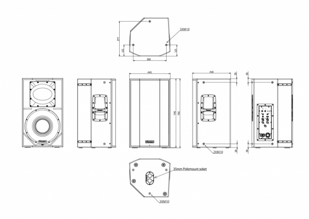 - Dos entrada combo XLR/TRS balanceadas. Dos salidas XLR para conectar a otros altavoces o subwoofers.