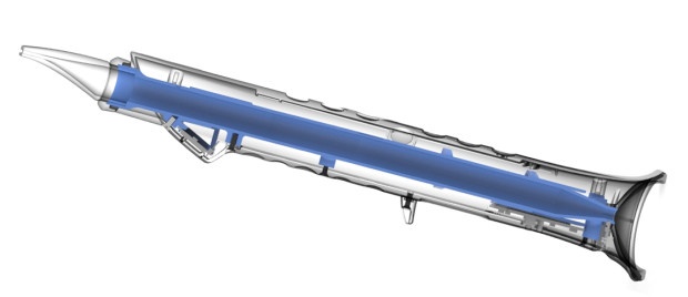 Por lo que puede apreciarse, se trata de un controlador de viento en el que hay por supuesto un control de intensidad de soplo, pero sin control de 'mordedura' (que en otros productos sí existe). Tengo mis dudas sobre si incorpora o no algún tipo de detector de movimiento y/o posición que puedan usarse para ampliar la capacidad de control gestual. Sí cuenta con controles de cambio de sonido y de octava, así como con una pequeña franja que a modo de mini 'ribbon controller' permite añadir otras expresiones con el dedo trasero de apoyo.