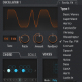 Se trata de que los 'osciladores', al tener tantos modos de funcionamiento, dan lugar a que sus controles cambién de función para cada tipo de fuente que elijamos. Y se hacía extraño no ver en el soft reflejados los nombres de los parámetros propios de cada modelo de oscilador. La versión 'V' inicial mostraba unos rótulos fijos e idénticos a los del teclado: 'Wave', 'Timbre', 'Shape'. Nombres que, en pro de la generalidad, eran poco específicos sobre la función de cada uno en los 15 diferentes tipos de comportamiento del oscilador 1 y los 21 en el oscilador 2. La nueva versión llega con rótulos diferenciados y reveladores del papel de cada control en cada modelo de fuente. Así podéis verlo en las imágenes a continuación, con los detalles de tres de los modelos del oscilador 1, en concreto los de 'Basic Waves', 'Two-Op FM', y 'Karplus Strong'.