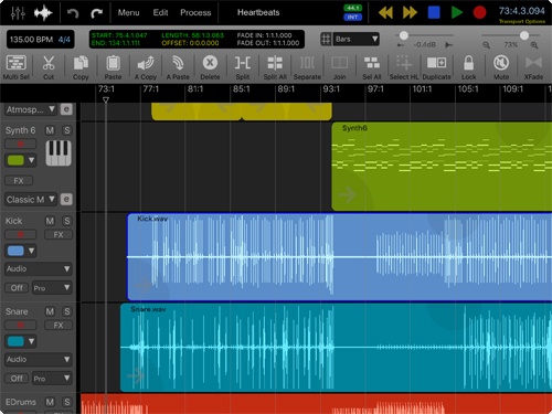 Para los que no lo conozcáis, os remitimos a las noticias anteriores sobre Auria, disponible en dos versiones. Auria Pro, la más avanzada y con precio de casi 50€ (idéntico a Cubasis 2), viene a ser algo así como un ProTools para iOS. Sigue ofreciendo unas funciones muy avanzadas de tratamiento de audio incluyendo fraccionamiento automático de loops o el uso de Élastique Pro para audio-warping, además de mezcla avanzada con buses, subgrupos y 6 envíos a auxiliares, con channel strip y master strip bien dotados. Sus pistas MIDI pueden gobernar instrumentos externos o los instrumentos incluidos como One y Twin2 de FabFilter o el sampler Lyra.