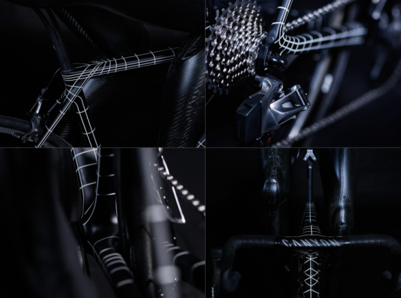 21 son los ejemplares de la bicicleta Ultimate CF SLX Kraftwerk de Canyon que ayer día 3 se comercializaron, y que se suman a la usada por Tony Martin. Son bicicletas en las que se incorporan a mano una tiras fluorescentes con un diseño claramente inspirado en los trajes que Kraftwerk usa en sus actuaciones. Una vez superpuestas estas tiras una laca transparente las fija.