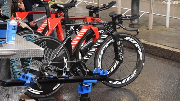 La ocasión lo merecía. Este año el Tour arrancaba con una etapa crono de 14 kilómetros alrededor de Dusseldorf, la ciudad donde Kraftwerk ha tenido desde siempre la sede de los estudios Kling Klang. Así que el fabricante alemán Canyon se aprestó a preparar una edición limitada conmemorativa de esa feliz coincidencia y Toni Martin la ha lucido el pasado sábado en ese breve recorrido.