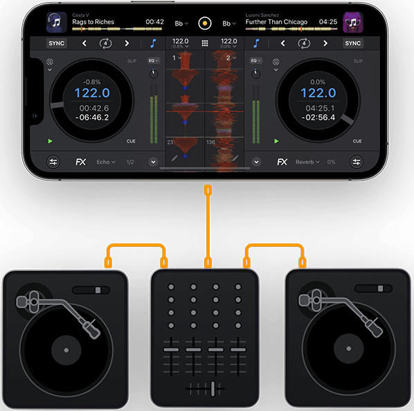 [Índice]Algoriddim asegura que ha mejorado notablemente el motor de audio de djay 4 para ajustar con mayor precisión el control del vinilo a fin de ofrecer un scratch mejorado con la latencia más baja posible, sin importar si está utilizando Mac, iPad o iPhone.