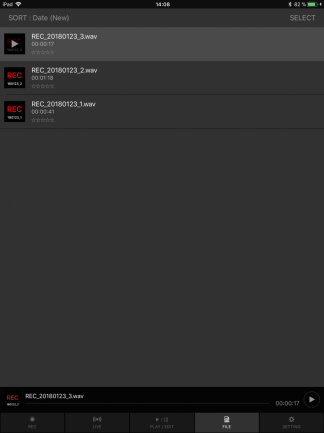 Respecto a las grabaciones, pueden hacerse en formato WAV o AAC. Cuando se graba empleando WAV la resolución máxima a la que puede grabar es 24 bits y 48 kHz –para usar una resolución compatible con todas sus mesas ya que no todas soportan 96 kHz–. Tras realizar las grabaciones la aplicación permite realizar un poco de edición básica, recortando los puntos de inicio y final de la grabación, añadiendo marcadores para diferenciar canciones durante la sesión, o empleando efectos de loudness y realce de subgraves –no suenan mal, pero cuidado con pasarse–.