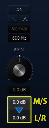 El procesamiento estéreo no es el habitual; en lugar de trabajar con dos ecualizadores independientes (uno para cada canal estéreo) cada banda del EQ posee dos controles que permiten ajustar el balance entre canales, de este modo podemos determinar en qué proporción se verá afectado el canal izquierdo frente al derecho por ejemplo. Este balance puede tratarse desde los dos puntos de vista del estéreo: Mid/Side (control superior, ±10dB) o bien Left/Right (control inferior ±3dB).