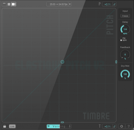 Los controles siguen siendo estremadamente simples, y más allá de la especificación del desplazamiento de tono/formantes/tiempo deseado, y los específicos para infiniSearch y feedback delay, la adaptación a diferentes tipos de contenido audio queda resumida en un único control (voicing) que permite definir en qué región del espectro (más grave o más aguda) se sitúan los formantes más relevantes.