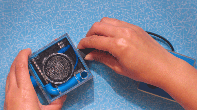 La caja incluye una tarjeta madre, un pequeño cono de altavoz, potencioómetros, entre otros, agregando además una zona de cuatro círculos programables que pueden funcionar como pad de baterías, receptor de sonido, grabadora, entre otros. Funciona por Bluetooth o USB y se le puede adherir un sensor de proximidad, dirección y distancia, de tal forma que puedan programarse efectos como distorsión o manipulación de sonidos, cambio de pistas, variación de volumen, entre otras funciones, todo mediante los gestos de la mano alrededor.