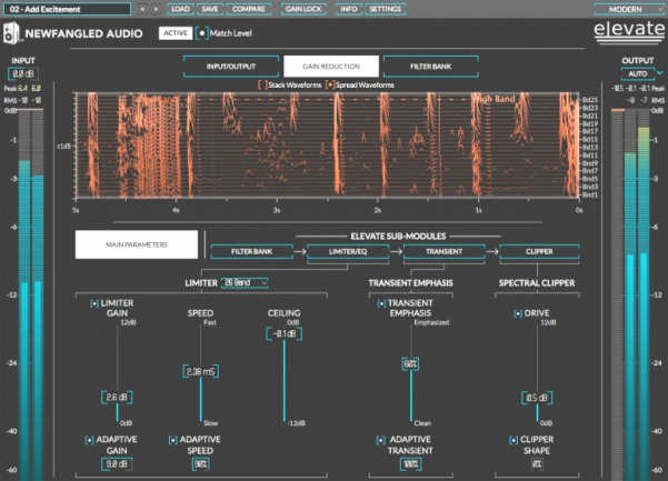 Tras regalar EQuivocate, Eventide presenta su extensión Elevate. Un plugin para mastering que eleva el nivel de una forma sensible a la señal y al oído, buscando una mayor transparencia. La frase publicitaria que lo presenta como el 'más avanzado plugin de mastering jamás creado' parece a todas luces pretenciosa. Pero reúne condiciones que apuntan buenas maneras. Empezando por el propio sello Eventide, aunque el desarrollo corresponda a Newfangled Audio.