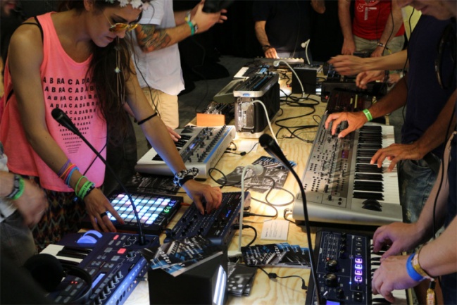 Novation ha organizado en el marketlab del Sónar+D una pequeña pero divertida exposición retrospectiva de sintetizadores que pueden ser manipulados por todos los que pasen por allí. Cada máquina tiene conectados unos buenos auriculares, con lo que la diversión está asegurada.