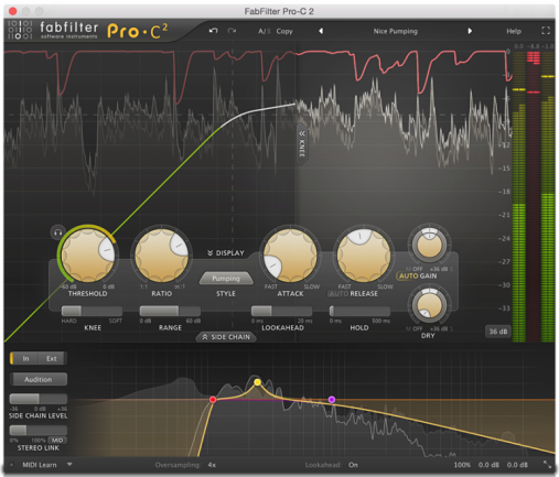 A ello se le suman una serie de opciones de control de precisión y mayor rango y controles sobre el sonido y carácter del compresor, incluyendo un rango ajustable de knee de 0sB a 72dB, lookahead de hasta 20ms, funciones de hold, oversampling de hasta 4x y sidechain avanzado.