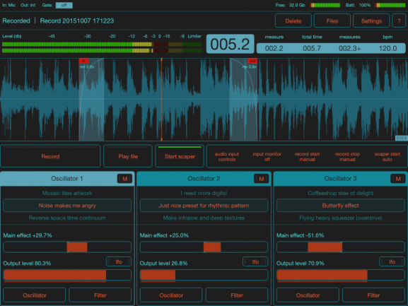 Bajo esta premisa, el desarrollador Igor Vasiliev ha presentado FieldScaper, una nueva app ideada como una herramienta de grabación de campo que se integra a un sistema de procesamiento que permite generar nuevos paisajes y texturas sonoras, con posibilidad de conducir la señal por Audiobus e Inter-App Audio y manipularla desde controladores MIDI.