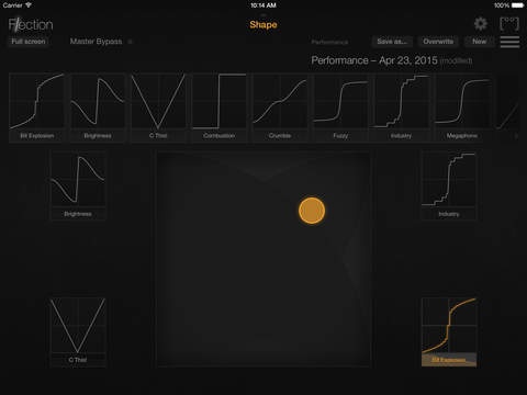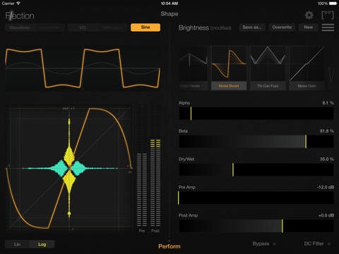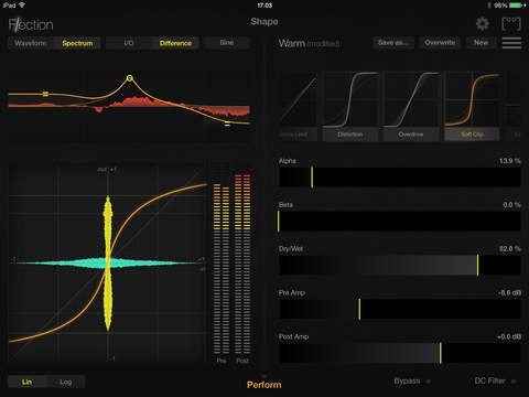 El de las distorsiones es siempre un mundo lleno de casos de 'magia' peculiar. El waveshaping pretende aportar algo de control en ese agitado océano y Flection (una nueva app para iPad, 10€) aporta un acercamiento sencillo pero suficientemente variado a esta técnica que facilita conseguir distorsiones ampliamente personalizadas.