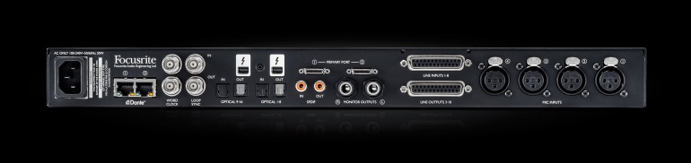 La compacta pero capaz interfaz está diseñada en formato rack, ofreciendo conexiones delanteras y traseras, además de puerto de expansión de hasta 58 entradas y 64 salidas, con posibilidad de doble conexión Thunderbolt para latencia mejorada. Soporta calidad de hasta 24 bits/192kHz y una latencia que presume de ofrecer un entorno para trabajo en tiempo real en todo sentido de la palabra.