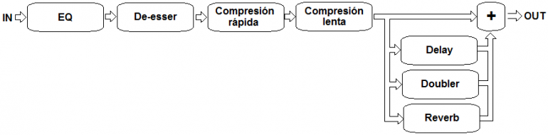 Puede realizar tratamientos mono a mono, mono a estéreo, o estéreo a estéreo, y en esencia se trata de un sistema que combina EQ, eliminación de sibilancia, y compresión como tratamientos correctivos, más eco / doblado / reverb en envío para dar un poco de ambientación.