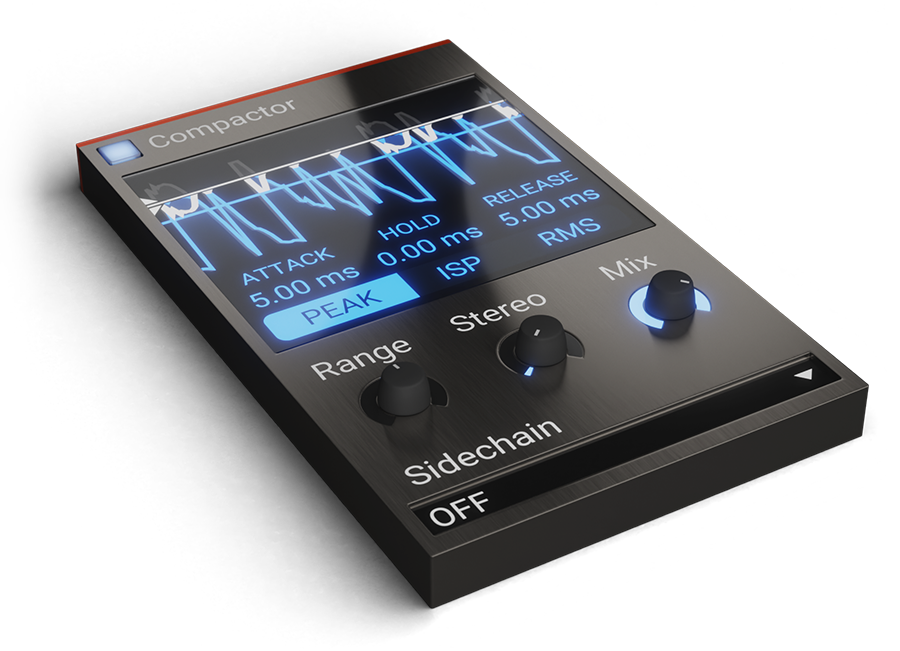Con Compactor el objetivo es hacer uso de una compresión/limitación intensa que permita arañar más nivel a las pistas. Hay controles típicos para estos usos como son el Threshold para determinar a partir de qué nivel se comenzará a reducir los picos, Range para definir el grado de reducción, y la terna de Attack, Hold, Release para establecer la mayor o menor agilidad de intervención creando una inercia para la activación y desactivación de la reducción.