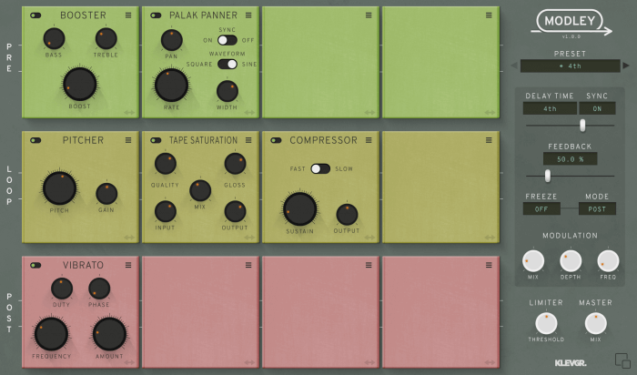 Modley está disponible de inmediato desde Klevgrand por $29.99 para formato plugin en Windows y Mac, o $7.99 para la versión iOS (para iPad, con soporte AUv3).