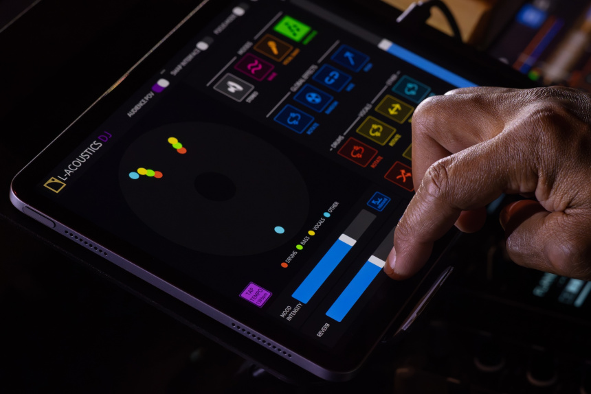[Índice]Todo el sistema puede ser controlado muy fácilmente por el DJ, la app L-Acoustics DJ es una interfaz intuitiva que permite controlar efectos espaciales mediante una interface táctil. La misma es compatible con el hardware LA-DJC.