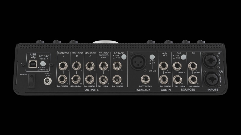 La versión Studio, ya activa, leva la cuenta con 3 pares de entradas y 2 de salidas y existe un ajuste ‘trim’ individual por cada entrada y salida para equilibrar niveles de referencia. Además añade interfaz audio USB 2x2 (entrada y salida estéreo) que llegan a los 24 bit y 96kHz, y cuenta con dos preamplificadores Onyx con alimentación phantom y una entrada minijack estéreo al estilo de la conexión de los móviles. Pensado para permitir su posible uso como interfaz de grabación cuenta con funciones de mezcla/monitorización sin latencia dentro del propio interfaz para poder entregar una escucha combinada de varias fuentes adicionales a la que esté siendo registrada. Cuenta con dos salidas para auriculares con volúmenes independientes y un micro ‘talkback’ incorporado, y aporta vúmetro led con unos generosos 16 segmentos para visualizar el nivel de la entrada.