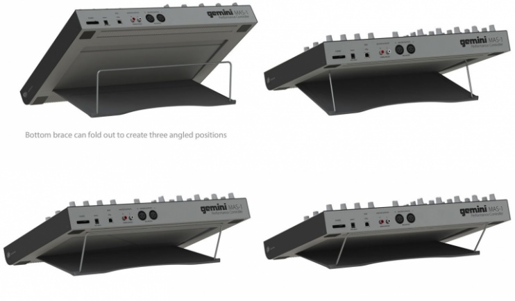 - Además el controlador dispone en su parte inferior de un sistema elevador plegable que permite 3 posiciones en ángulo, para facilitar su uso ya sea sentado en el estudio o de pie en el escenario.