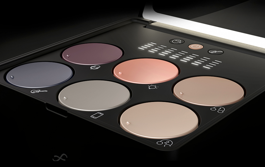 MIDIPlus Mirror es un interfaz de audio portátil con entradas para micro e instrumento, conexiones de datos específicas para dispositivos móviles y ordenadores, y dos salidas de auriculares con control de señal independiente. Las entradas también cuentan con controles independientes de señal. La resolución del interfaz es de 24 bits y 192khz y puede suministrar alimentación phantom de 48v a un micrófono de condensador. Hasta aquí nada que se salga demasiado de lo común en el mercado de interfaces portátiles... si no fuera porque Mirror se ha diseñado como si fuera una caja de maquillaje, con controles rotatorios de colores similares a los que emplean muchas mujeres para maquillarse –y hombres, por qué no decirlo–, y ubicando un espejo con luz LED en la tapa protectora.
