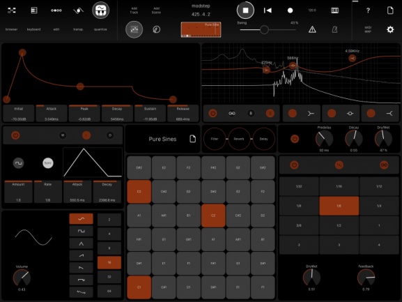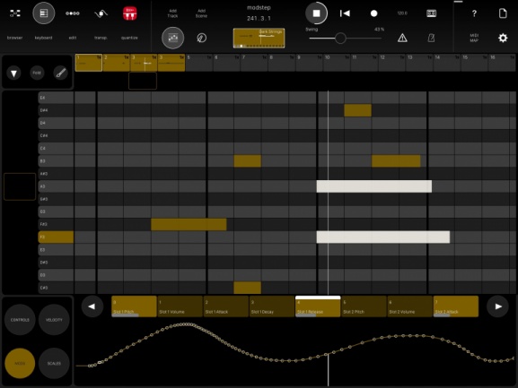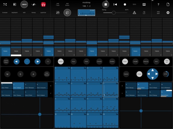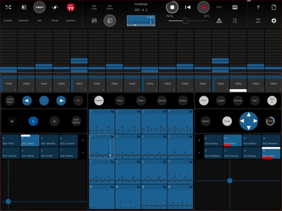 En un mundo que incluso en iOS está plagado de DAWs (Cubasis por ejemplo), las aplicaciones estrictamente centradas en MIDI y carentes de pistas para grabación de audio parecen un hermano menor. Pero ModStep reclama su lugar haciendo posible unas sensaciones al estilo de Live, y permitiendo la especificación/generación de señales y reglas de modulación que permitan automatizar variaciones de parámetros por doquier y generación de mensajes de CC MIDI igualmente animados de forma automática.