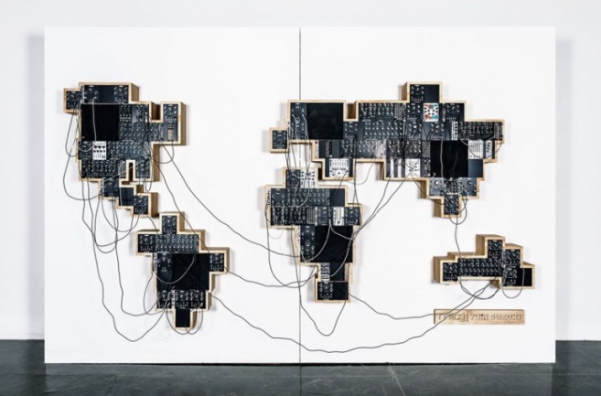 Se trata de un sintetizador modular acoplado en la pared simulando la estructura de un mapamundi, incluyendo diversos módulos, en su mayoría Moog –algunos de hecho muy recientes como Geodesic Sampler o Geospatial Reverb– aunque también se dejan ver de otras marcas como un generador de envolvente o un filtro multibanda espectral de 4ms o el módulo Clouds de Mutable Instruments. En total se hallan treinta samplers, diez reverbs, cinco secuenciadores y cuatro módulos de síntesis, todos distribuidos en diferentes países o continentes.