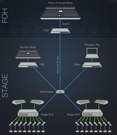 Por sus características puede ser útil, como revela su denominación, para resolver necesidades de escenario, capturando señales y realizando una mezcla local para monitores que incorpore otras señales recibidas por vía digital/AVB. Igualmente podría actuar como mezclador en sí mismo para pequeños montajes, o como interfaz de audio capacitada para 192KHz y con unas especificaciones que no desentonan en tareas de estudio.
