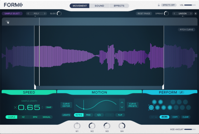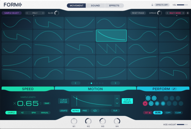 Está por ver lo que pueda llegar a ofrecer el nuevo sintetizador Form. Propone como base el uso de muestras, pero ofrece posibilidades de modificación significativas a través de diversos recursos y pantallas que no siguen, al menos no de forma ortodoxa, el esquema clásico de complementos 'sustractivos' sobre las muestras, sino que ofrece juegos complementarios abundantes para maltratar y deformar ampliamente el contenido muestreado.