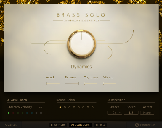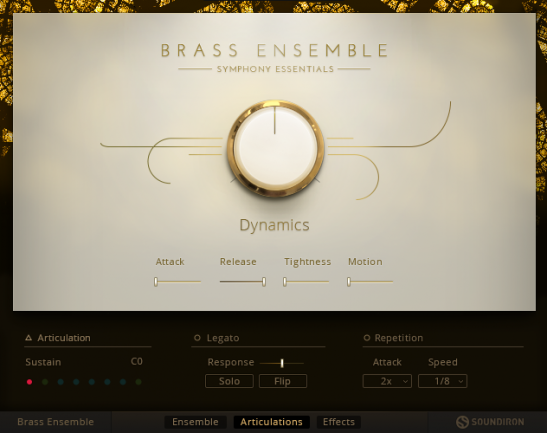 Los añadidos orquestales de Symphony Essentials en la nueva Ultimate 11 son generosos en articulaciones para permitir apreciar la capacidad del entorno de Native en este tipo de tareas. Como es tradicional agregan en pocos controles los elementos básicos para dotar de expresividad el resultado, en especial con el inevitable y utilísimo 'dynamics' que resulta clave para frasear con sensaciones dinámicas que afecten a la cualidad del sonido y no sólo a su nivel.