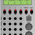 [Índice]Un modulo que permite multiplicar (elevar) la frecuencia de un reloj por un factor elegido (mediante un voltaje de control) entre una serie de enteros, potencias de dos, o una combinación de ambos. El uso previsto es el de combinarlo con un secuenciador para que en cada paso del secuenciador pueda haber un número diferente de disparos de notas. Para ello una fila del secuenciador controlaría el factor multiplicativo de la señal de reloj que se aplica en cada paso… La idea está tomada de un recurso que aplicaban entre otros Tangerine Dream para salirse de la cuadriculada estructura de un secuenciador por pasos.