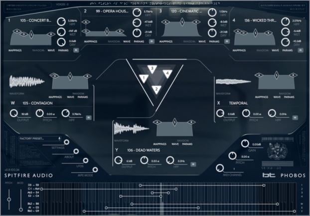 En este caso con Spitfire Audio se trata de Phobos, un proyecto que surge como idea de BT y combina gran parte de sus librerías personales, todas articuladas en un completo instrumento pensado especialmente para la creación de bandas sonoras, trailers y sonido para cine, ofreciendo detallados controles sobre la generación, procesamiento y control de los sonidos creados.