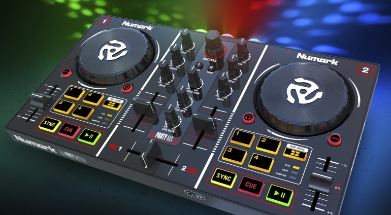 Numark ha anunciado en el CES de Las Vegas un nuevo controlador para DJs de gama baja llamado Party Mix. El nuevo dispositivo está dirigido claramente a un mercado no profesional o mercado de consumo, y es un controlador de dos canales con interfaz de audio integrado, controles básicos de transporte –play, cue y sync–, cuatro pads en cada canal para los hotcues, loops y el sampler, controles de EQ de dos bandas, controles de ganancia, ausencia de controles de filtro, mini faders para el control de pitch y realizado totalmente en plástico, o eso parece a primera vista.